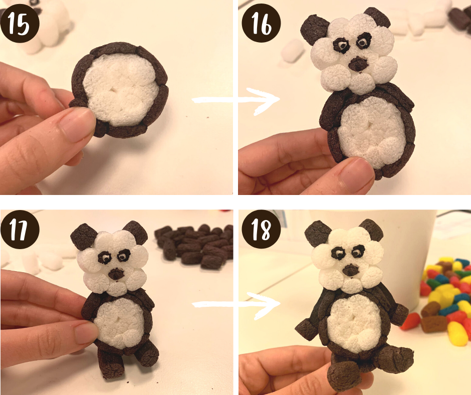 Se depois de pronto o seu Panda não tiver equilíbrio, pode colocar um TiP adicional por baixo para lhe dar apoio. Pode também adicionar, colando, um palito por detrás para que o Panda fique sentado.