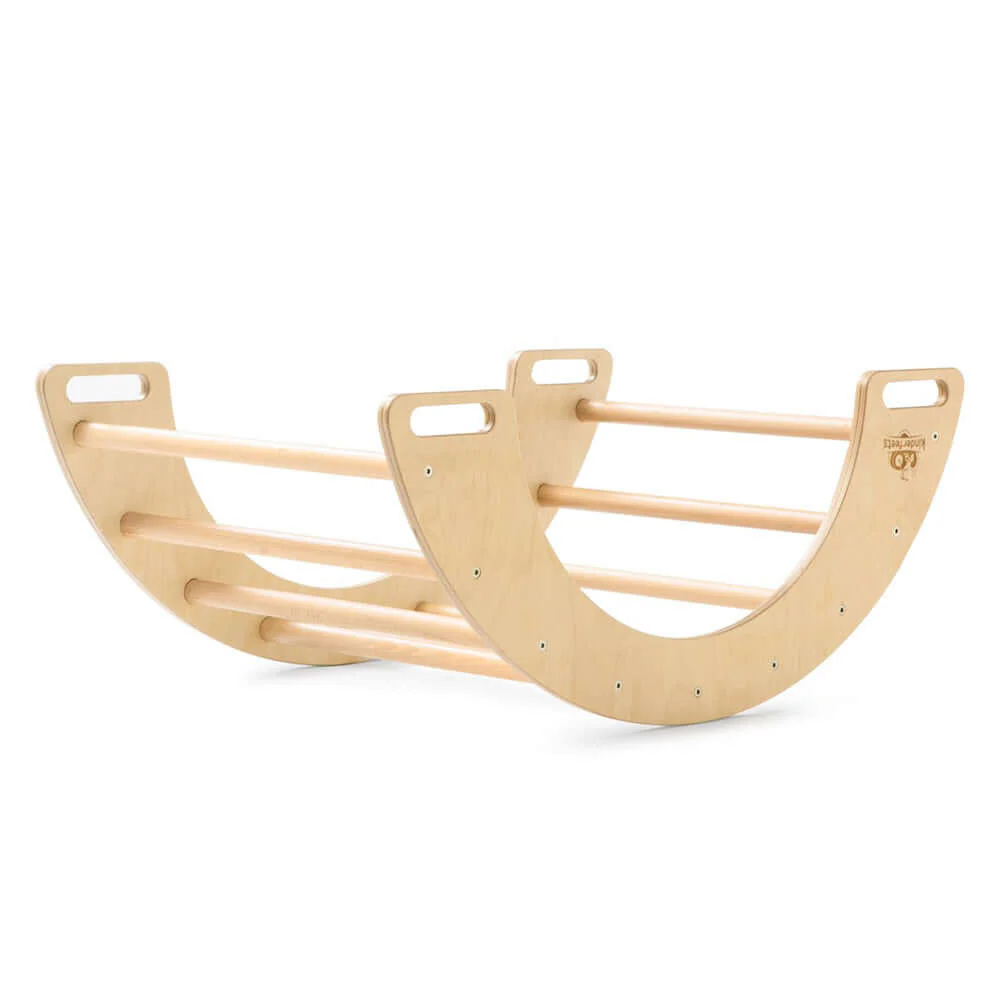 O Arco de Balanço e Escalada Pikler serve como brinquedo de escalada para crianças pequenas ativas. Fabricado com madeira compensada de bétula e faia de origem responsável, é uma opção sustentável maravilhosa para os pequenos explorarem o seu lado aventureiro. Através do desenvolvimento físico proporcionado pelo sistema Pikler, as crianças ganham força muscular e cardiovascular, desenvolvem autoestima, aprimoram a coordenação motora ampla e exploram sua imaginação simultaneamente.