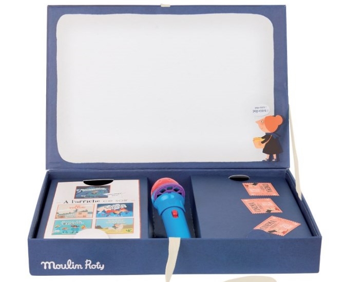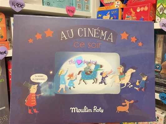 Descubra a caixa de cinema Moulin Roty, uma caixa com uma lampada de história para projetar 5 histórias diferentes em uma tela branca para fazer como no cinema.