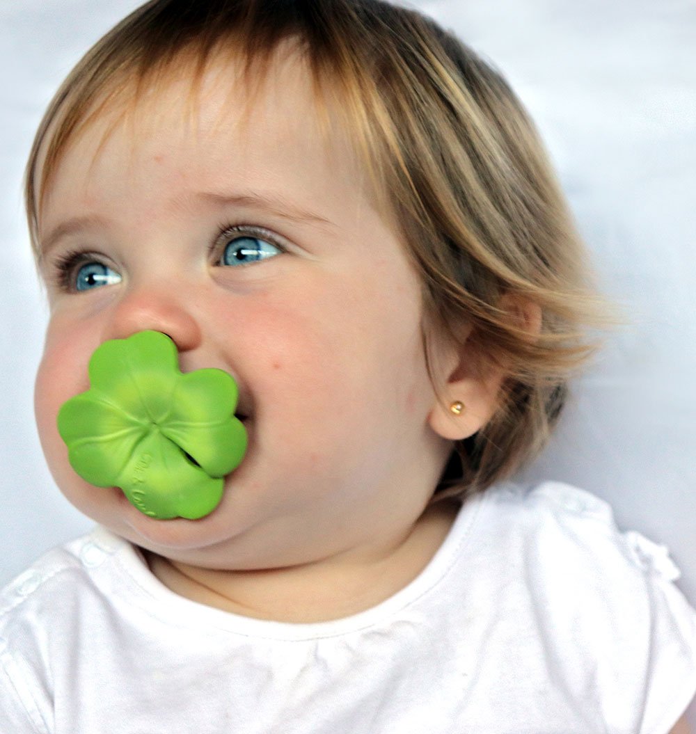 Eli the Clover é o novo conceito de mini mordedor para bebés da Oli & Carol. Desenhado com um formato ergonômico que o torna fácil de segurar e mastigar. Incluindo uma variedade de texturas, como pontos em relevo ou nervuras, tornando muito agradável para os mais pequenos acalmar as gengivas em fase de dentição. Este mini mordedor é fácil de pendurar em uma correia e mastigá-lo em qualquer lugar ... leve o seu mastigável alto e baixo!