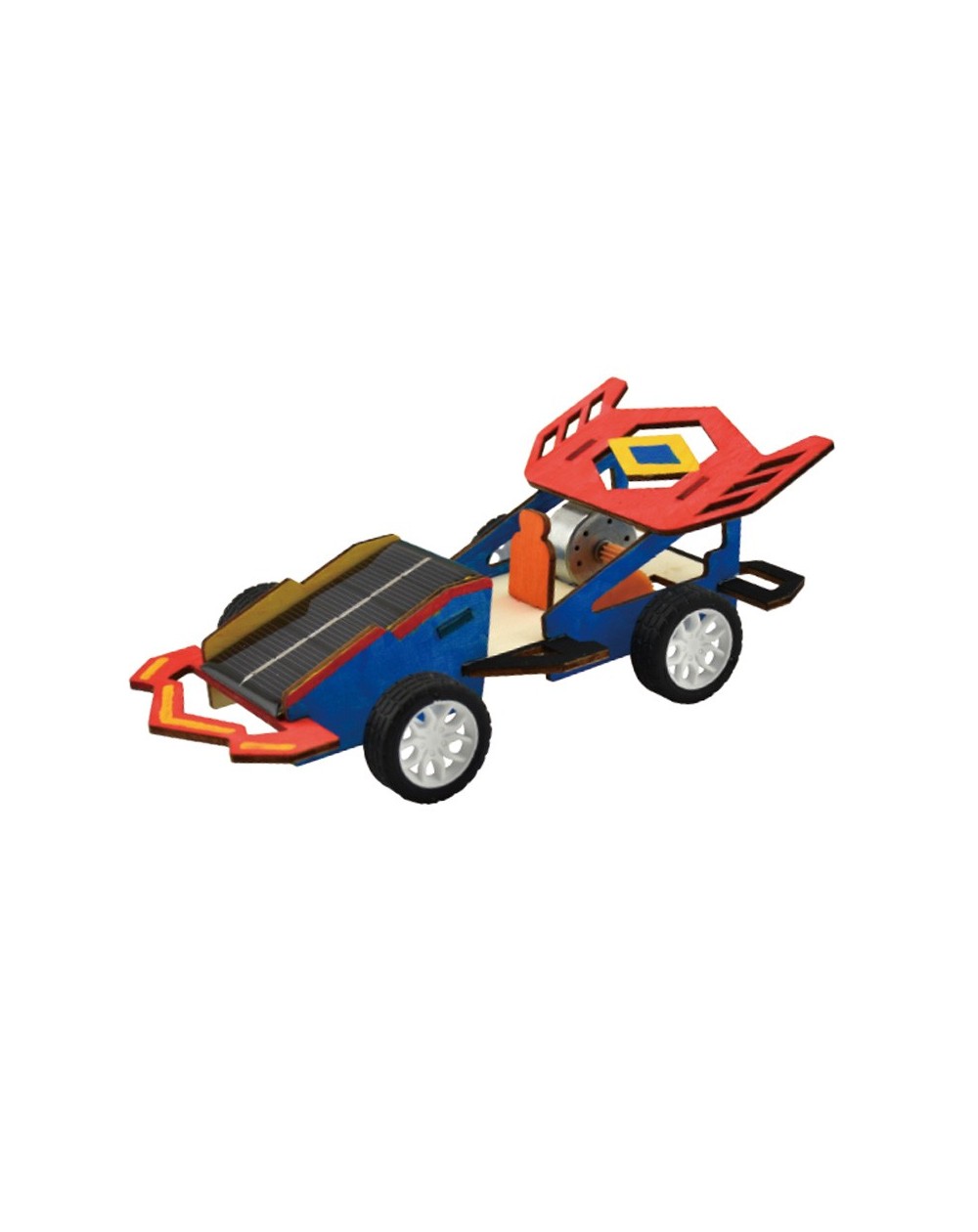 Conteúdo: peças de compensado, painel solar, cola, engrenagens, rodas, motor elétrico, vareta metálica, tinta, pincel, juntas plásticas, espuma eva(...)
