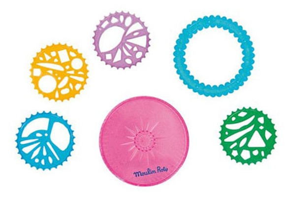 Para desenhar todos os tipos de espirais: aninhe um dos elementos plásticos no maior circulo que serve como base e arraste o lápis para dentro, a magia funciona!...