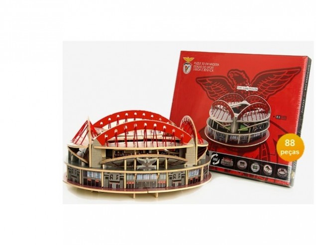 Puzzle 3D em madeira do Estádio do Sport Lisboa e Benfica, classificado como produto de coleção.
