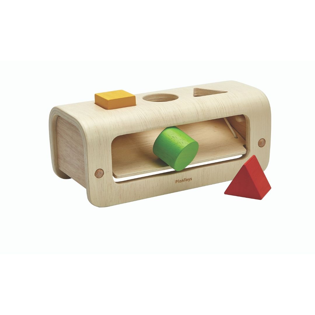 Usa as habilidades motoras finas e força física para empurrar cada forma através de seu espaço correspondente na plataforma de madeira!