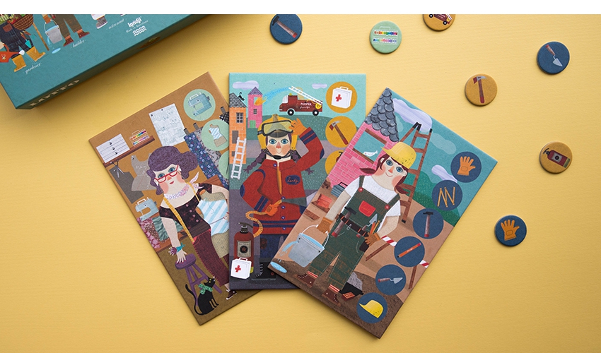 6 cartões de ocupação + 36 cartões redondos com imagens de ocupação.