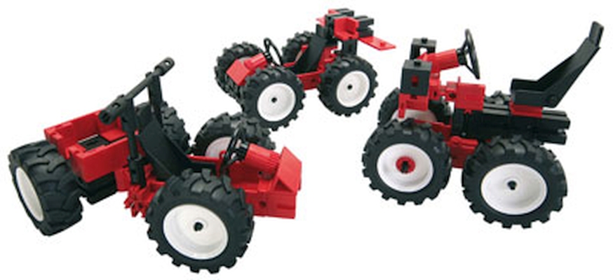 Estes são os kits de iniciação Fischertechnik, com modelos realistas de carros, motas ou tratores. Este kit inclui três modelos de kart para todos os terrenos e com direção funcional!