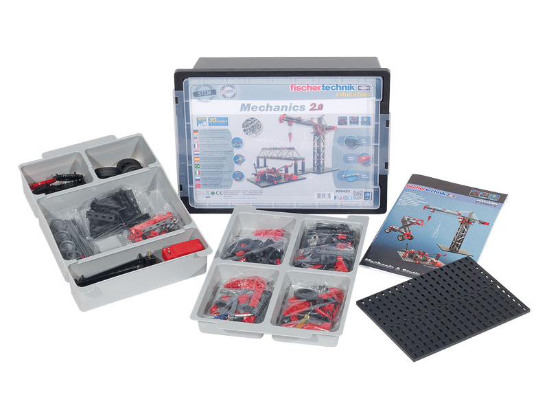 No total, os 500 componentes da fischertechnik estão claramente identificados e organizados na caixa. Juntamente com as instruções de construção fáceis de entender para 30 modelos de diferentes níveis de dificuldade, tudo é entregue numa caixa de armazenamento prática de usar.