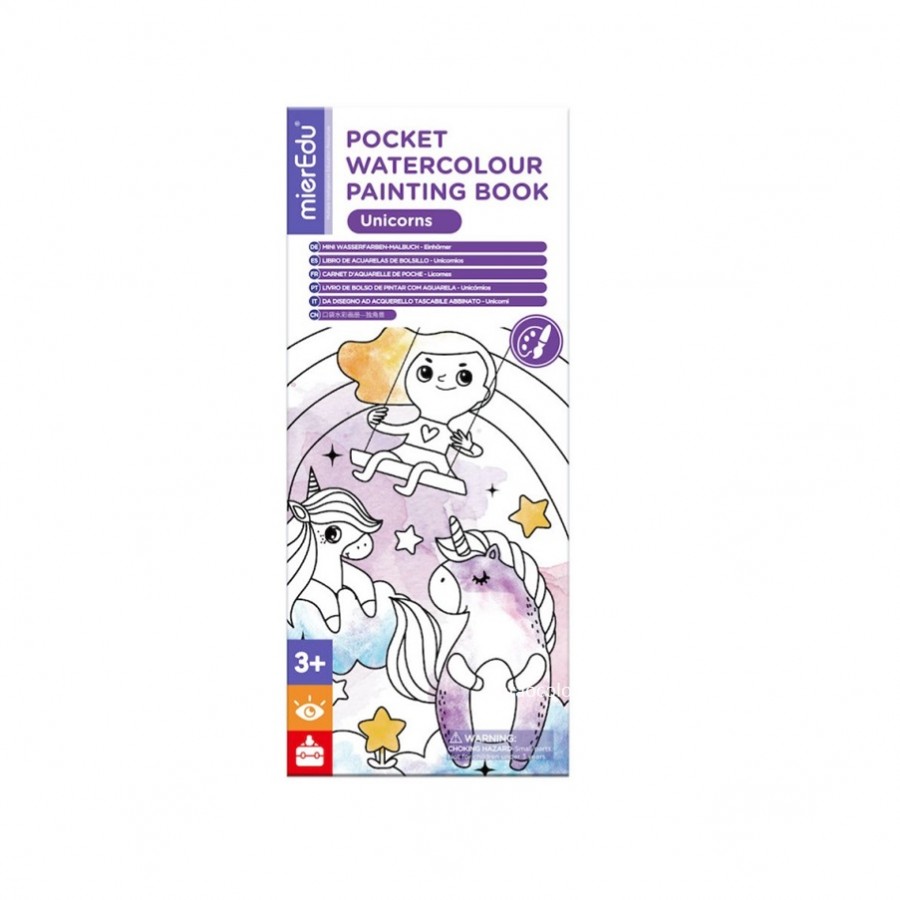 Leve este fantástico livro de bolso para qualquer lugar para pintar Unicórnios divertidos com aquarelas.