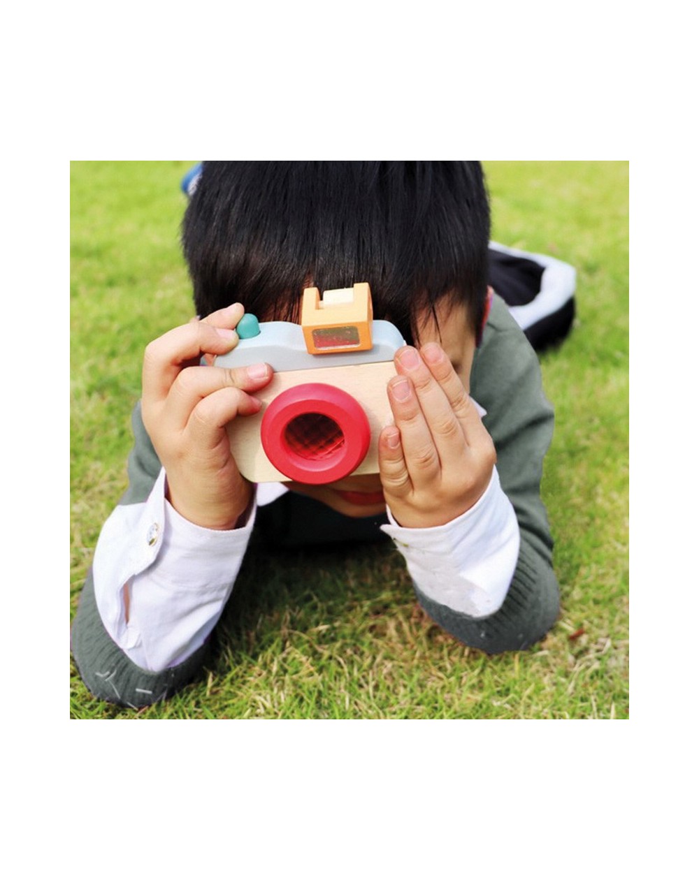 Câmera fotográfica de madeira com som de guincho!
