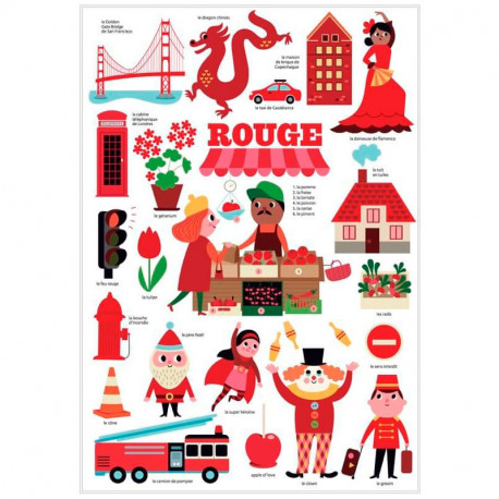 É uma excelente forma de aprender e memorizar nomes de animais, objetos e outros elementos que reconhecemos como referências na cor vermelha.