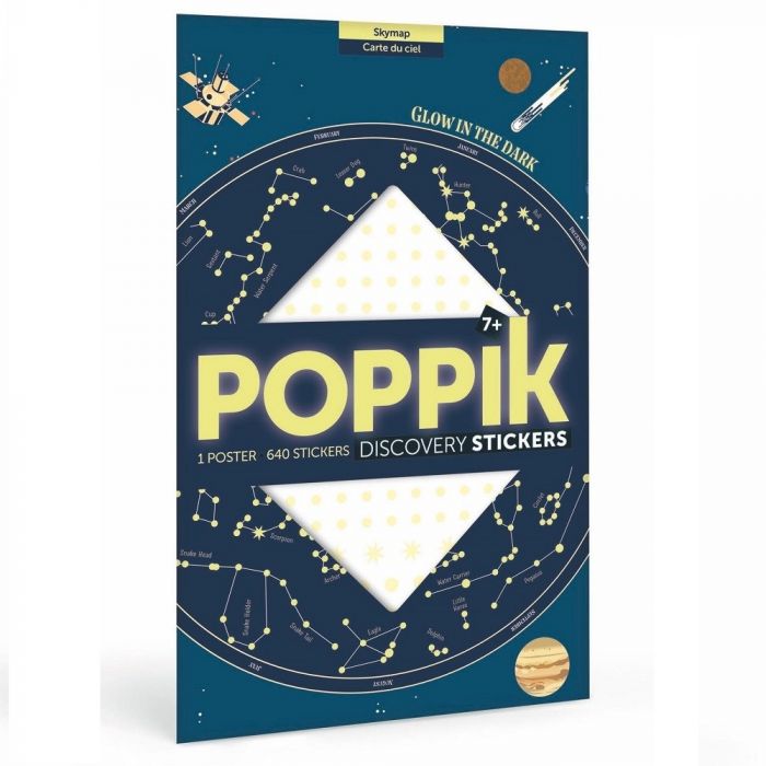 Impressionante, educacional grande atividade de adesivos reutilizáveis de mapa do céu definida por Poppik.