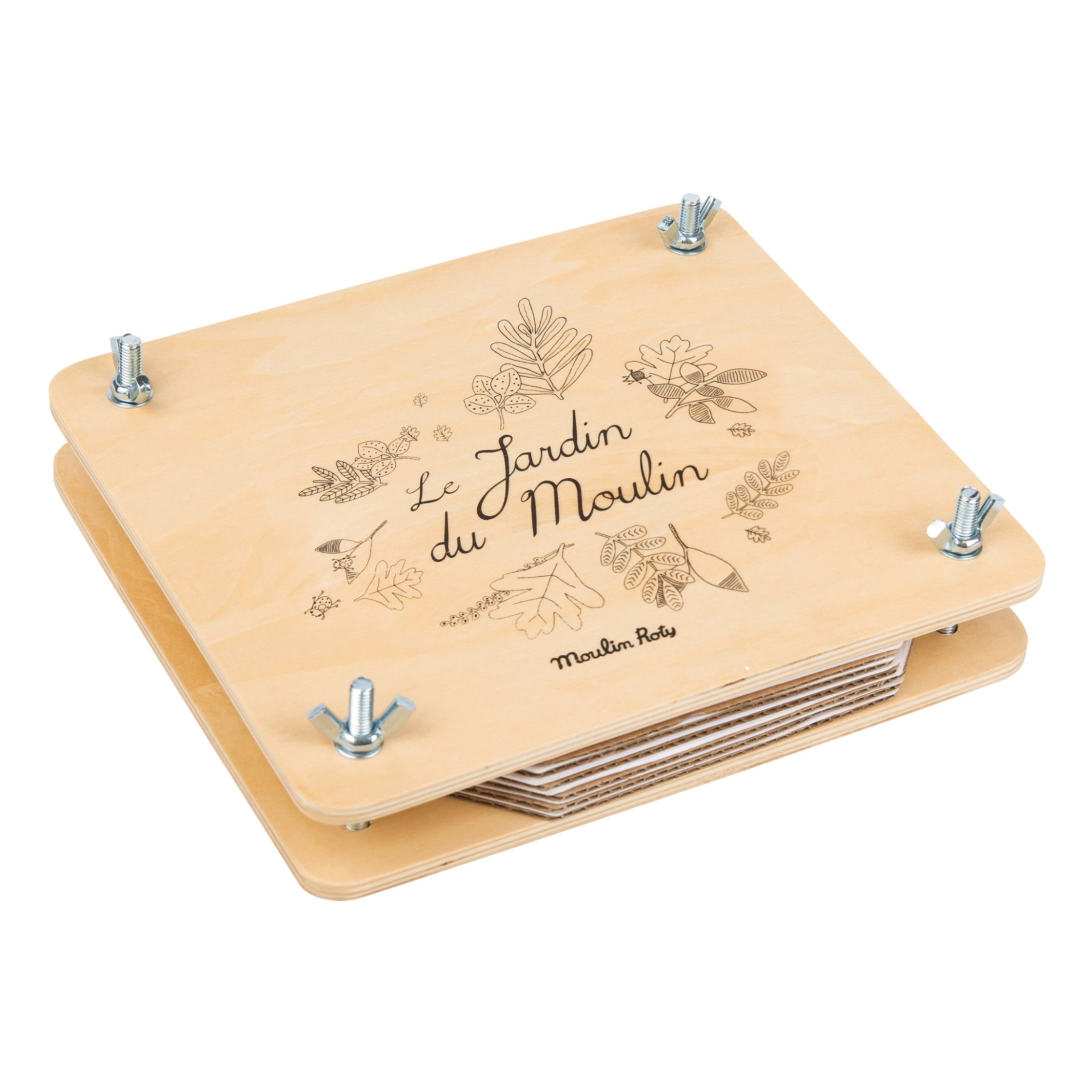 Feito em madeira, apresenta delicadas ilustrações de linhas inspiradas em antigos desenhos botânicos.