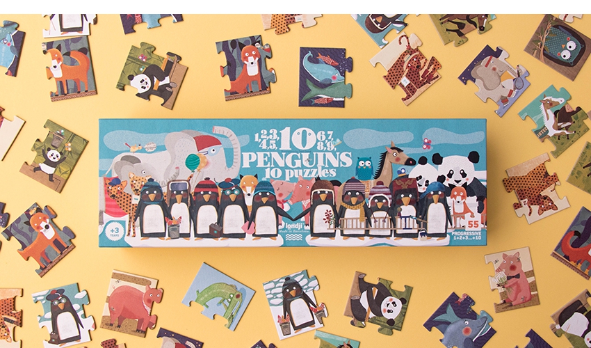 1 coruja, 2 crocodilos, 3 porquinhos ... quantos animais o seu pequeno conta? Esse quebra-cabeça progressivo torna o aprendizado divertido e, quando terminarem os 10 quebra-cabeças, contarão dez pinguins encantadores.