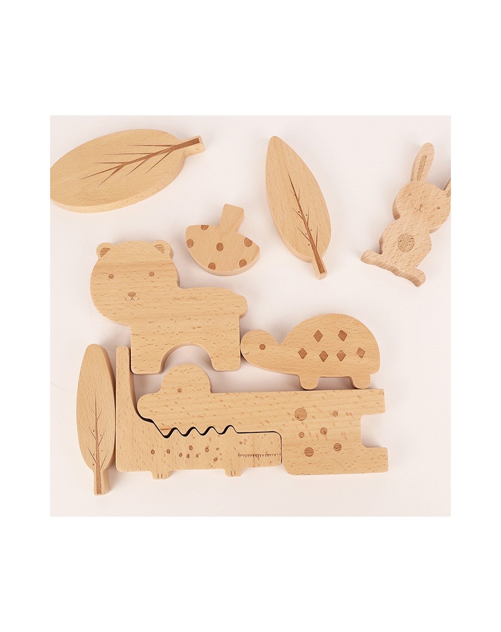 Contém 9 peças de madeira.