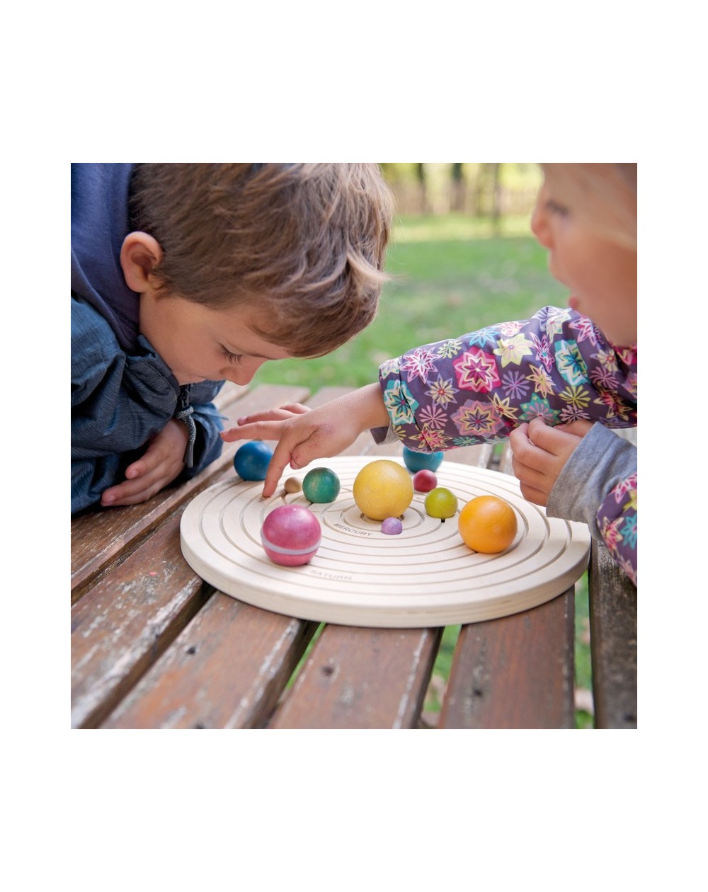 Inclui um guia educativo, um saco de pano para guardar os planetas e alguns cartões com fotografias reais dos planetas, que nos darão informações básicas como: temperatura, diâmetro, nível de luminosidade, tamanho, se é planeta, estrela ou satélite natural.