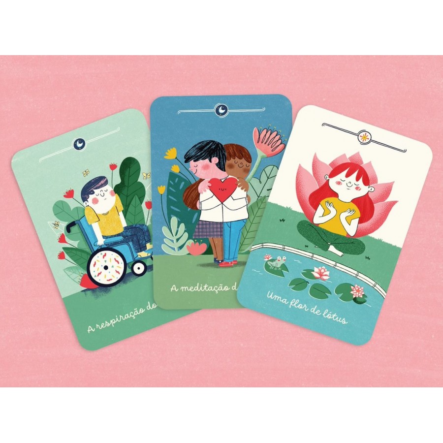 Como viver mindfulmente? Nesta caixa vais encontrar um livro e 32 cartas ilustradas para explorar em família, com praticas simples que te vão inspirar e ajudar a viver todos os dias, de forma mais consciente.